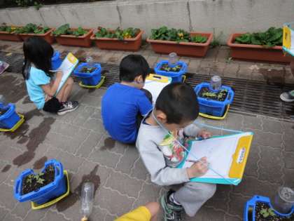 先週,種をまいたあさがおが,芽を出しました。毎朝,がんばって水やりをしている子どもたちは,とてもうれしそうです。生活科の時間に,観察しました。じっとよく見て絵を描いて,「ぼくは,あさがおのめがでて,うれしいです。」と気持ちを書いている子もいました。