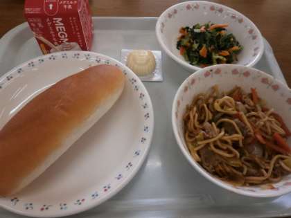 小型コッペパン・牛乳・ソース焼きそば・小松菜のごま油いため・型チーズ」