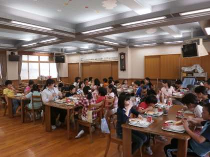 「ソースやきそばがおいしかったです。なぜかというと,ソースがめんにしみこんでいたからです。」 ・・・・・2年生の感想から