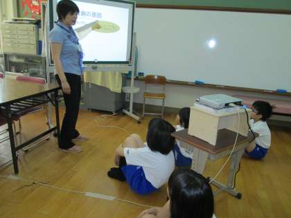 体重測定の前に,養護教諭の長光先生から歯周病についてのお話をききました。歯周病について説明していただいたあと,歯磨きは虫歯予防だけではなく歯周病予防のためにも大切だということを教えていただきました。