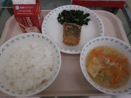 ごはん・牛乳・ほっけのたつたあげ・ほうれん草のおかか煮・キャベツのすまし汁