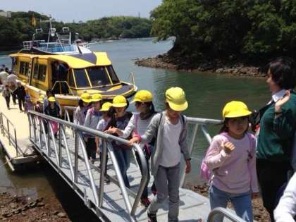 賢島から船に乗って,みさきの家「なかよし港」に到着しました。