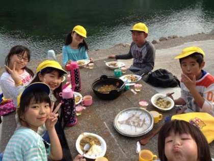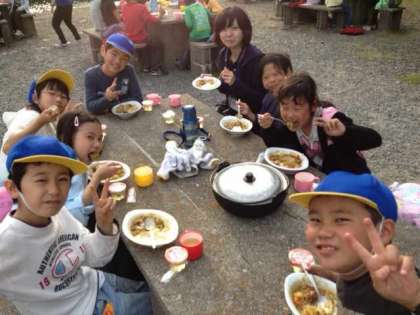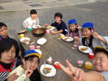 協力して作ったカレーの味は最高です。みんなでおいしくいただきました。