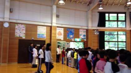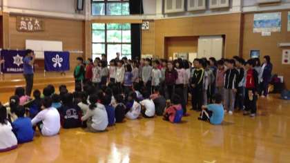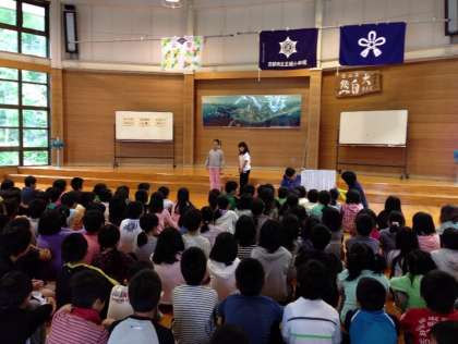 6時に起床し,7時からプレイホールで朝の集いを行いました。