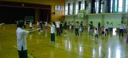 PTA保健体育部の方々の主催により「太極拳」の体験教室が本校体育館で行われました。100名を超える参加があり,みんなでさわやかな汗を流すことができました。