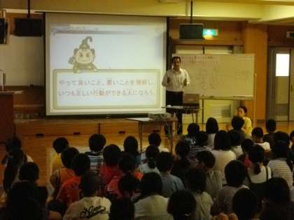 3校時,上京警察署の方をお招きし,非行防止教室を行いました。子どもに社会のルールや自分の行動に責任を持つことの大切さを伝え,犯罪に巻き込まれないようなスキル等を育成したいと考えています。
