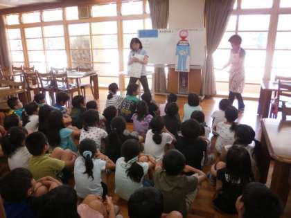 「アマアマ星人の侵略」という資料を見た後,体の成分や1日に必要な水分について学習しました。最後に清涼飲料を飲みすぎないための10か条についても知らせました。
