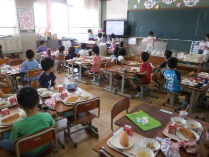 「パンプキンチャウダーは,かぼちゃの味がしっかりしていておいしかったです。ツナごぼうサンドの具は,歯ごたえがあっておいしかったです。」・・・6年生の感想から