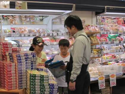 事前に,たくさんのお客さんに来てもらうために,スーパーはどんな工夫をしているかを予想をしたり,調べたいことを考えたりしていたため,それぞれの子どもたちが知りたいことについて質問したり見学したりすることができました。