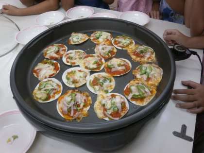 ・わたしは,じぶんでつくったピザとお店でかうピザとでは,じぶんでつくったほうがおいしかったです。たべるまえ,はじめてじぶんでつくったピザをたべるとき,トマトのあじがおいしいかなと思いました。でも,たべるとおいしかったです。いえでもつくりたいなと思いました。