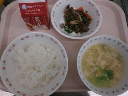 ごはん・牛乳・プルコギ・レタスと卵のスープ