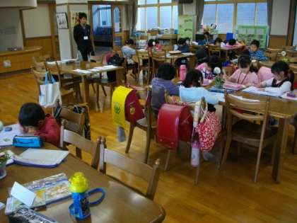 放課後まなび教室は,毎週金曜日の3〜4時に低学年の子どもたちがランチルームで学習しています。今日から,1年生がまなび教室に参加しています。