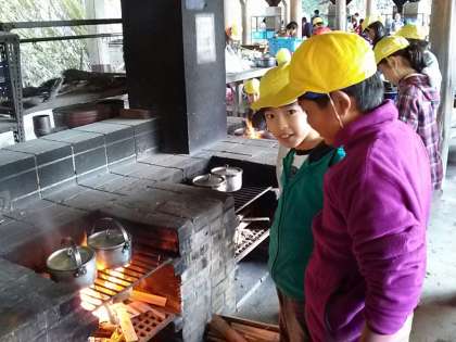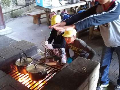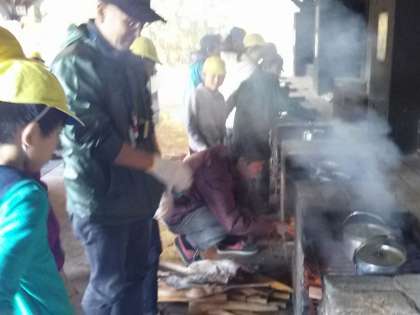 1日(金)5年山の家 野外炊事 火がつきました