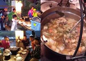 山の家での初めての野外炊事です。おいしそうな夕食ができました。