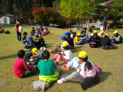 それぞれのグループがラリーを終えて帰ってきました。お昼ごはんはハンバーグ弁当です。