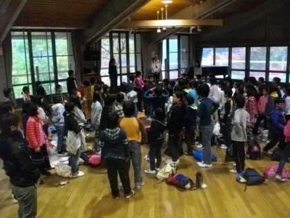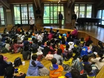 朝9:00にスタートした登山。全員登りきって3:00に戻ってきました。お世話になった先生方にお礼を言い、いっしょにがんばって登った正親小学校のお友達とあいさつをしました。