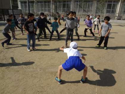 毎週金曜日の中間休みは「草の芽遊び」をしています。今日はころがしドッジをしました。とても楽しんでいました。