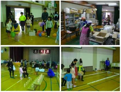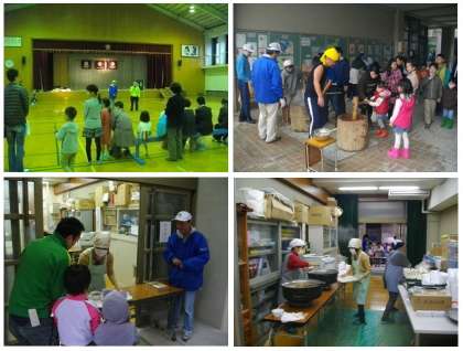 体育館では,ゲームコーナーがあり,ピロティでは餅つき大会が行われました。