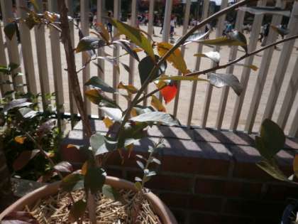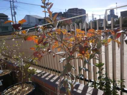 4年生が,10月に植え替えや剪定したブルーベリーが紅葉してきました。