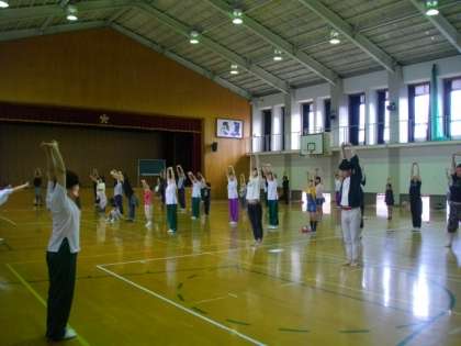 PTA保健体育部の皆さんの企画・運営によるスポーツ教室が開催されました。体育館で太極拳を体験しながら,さわやかな汗を流すことができました。