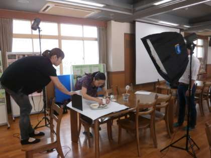 ※今日は,理研ビタミン(株)さんの取材がありました。給食の献立も写真に撮られたのですが,テレビでみるような,料理の雑誌の写真撮影のようでした。美しく撮っていただきました!!