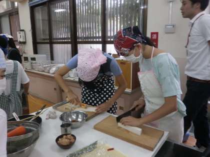 昨日の6−2に引き続き,「みそ汁」と「野菜いため」を作りました。