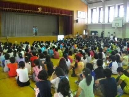 児童朝会がありました。スポーツ・保健委員会から先日行われたドッヂボール大会の表彰や,環境委員会からのクイズがありました。