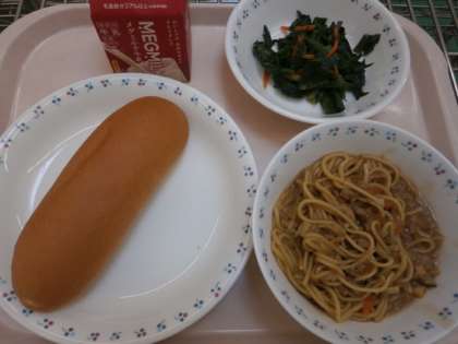 小型コッペパン・牛乳・担々麺・ほうれん草のいためもの