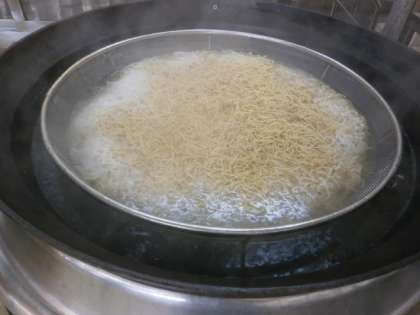 ※担々麺(たんたんめん)は,中国・四川省のめん料理です。担々麺の『担々』とは,『天びんぼう』のことです。むかし,天びんぼうでかついで売り歩いていたので,この名前がつきました。スープがたくさん持ち運べないので,汁の少ないめん料理になりました。