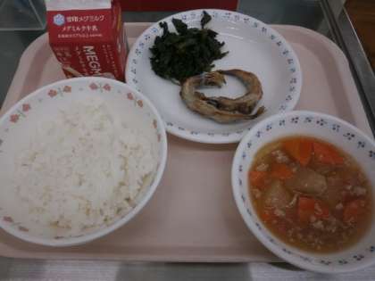 ごはん・牛乳・とうがんのあんかけごはん(具)・ししゃものからあげ・ほうれん草のおかか煮