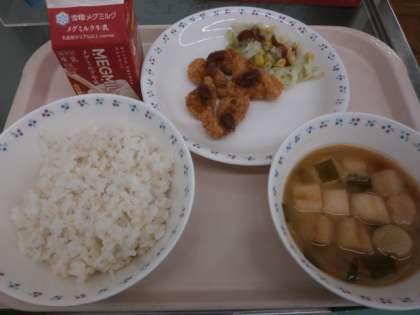 ごはん・牛乳・チキンカツ(ソースつき)ソテー・みそ汁
