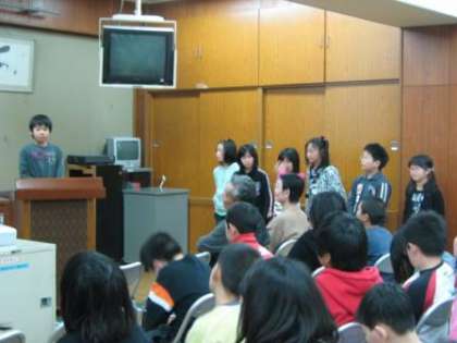 今日はその学習の総まとめとして,今まで調べてきたことや体験したことを新聞にまとめ,地域の人達や学年の友達の前で発表する機会をもちました。プレゼンテーションと発表する内容を覚えて大きな声でしっかり発表できました。