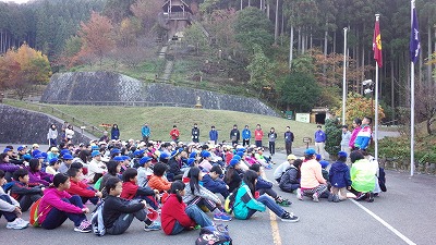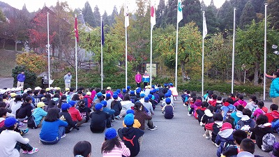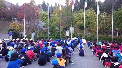 2日目もとてもいい天気になりました。今日の朝の集いは,同じ時期に宿泊する他の学校と一緒に行いました。