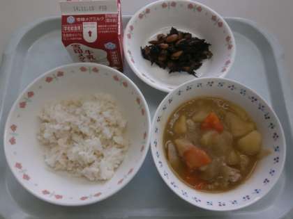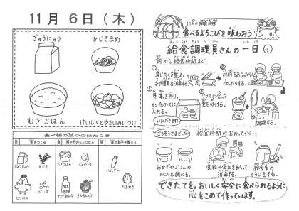 「給食おいしかったです。けいにくとやさいのにつけのじゃがいもがホクホクでした!!ひじきまめもおいしかったです。また,作ってください。」
