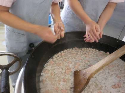 ※肉だんごは,給食室で1つ1つ手作りしています。