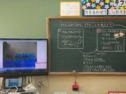 12月のなかよしの日では,「みんなのためにできること」について考えています。特に整理整頓や掃除をすることの意味や大切さについて子どもたちからたくさんの意見がでました。今日の給食の後には,「ごみ0の取組」を行います。