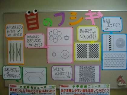 保健室で3年生の体重測定を実施しました。測定の前に,養護教諭の高橋先生から,目の健康についてのお話とクイズがありました。保健室前には,目の健康に関する掲示物があり,子どもたちが立ち止まってみています。