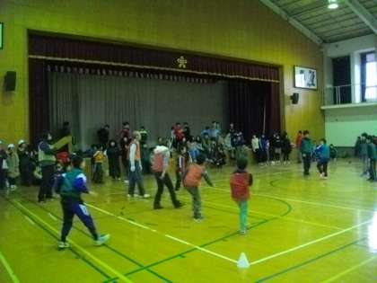 地域の少年補導主催でキックベースボール大会が開催される予定でしたが,あいにくの雨天のため,体育館でドッヂボール大会が開催されました。