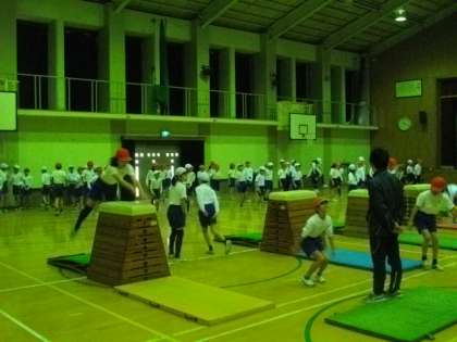 跳び箱で,いろいろな跳び方に挑戦しています。