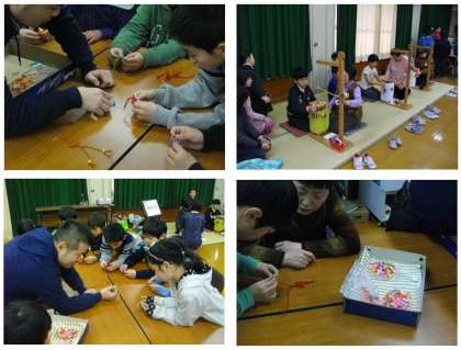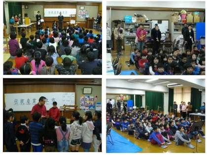 学校運営協議会の総合的な学習部の方々お世話になり,土曜学習「伝統産業見本市」を4年生対象に行いました。今回は「手描き友禅」「座繰(ざくり)」「和菓子」「西陣織」「組ひも」「房ひも」「竹工芸」「数珠」の8種類の伝統産業を地域に住んでおられる専門の方々に指導していただき,グループごとにすべての仕事を実際に体験させていただきました。どの伝統産業も初めて体験することが多かったのですが,楽しみながらも真剣に取り組んでいました。学ぶことも多かったと思います。お世話になった地域の方々,ありがとうございました。保護者の方々も多数ご参観いただきました。ありがとうございました。