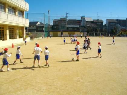 3年生が体育でサッカーに取り組んでます。