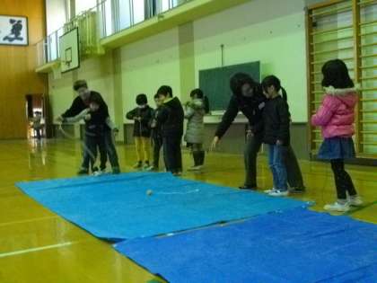 地域の方にお世話になり,昔遊び体験をしました。