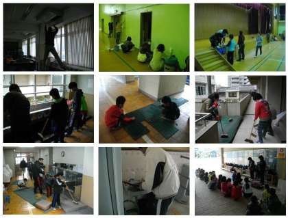 PTA役員の方々をはじめ,保護者・地域の方々・子どもたちで総勢100名を超える参加がありました。普段,なかなか掃除ができないエアコンのフィルターや体育館周りの掃除をしていただきました。本当にありがとうございました。