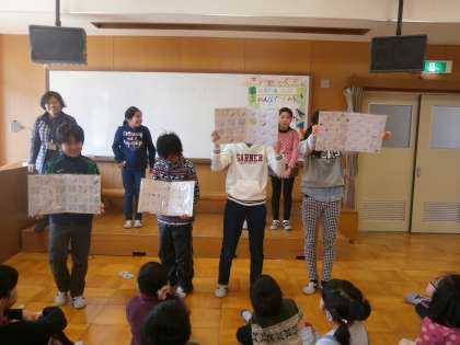 1年生から5年生で計画し,話し合い,準備を進めてきました。5年生が,初めて議長団として活動しました。当日は,司会をしたり,「新聞のり」の遊びを説明したりしました。1年生は,はじめのことばとおわりのことばをがんばって言いました。2年生は,すてきなプログラムを作りました。3年生は,「輪ゴムリレー」を考え,わかりやすく説明してくれました。4年生は,みんなからのメッセージを色紙にまとめ,プレゼントしました。6年生の笑顔が印象的でした。