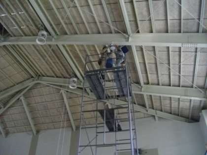 体育館の照明をLEDに交換する工事が始まりました。(28日まで)