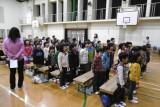入学式の練習をしました。入学式の流れを知ったり,国歌・校歌や新入学生へのお迎えの言葉を練習しました。お迎えの言葉をみんなで声をそろえて元気よく言ったり,けんばんハーモニカを上手に演奏したりできました。