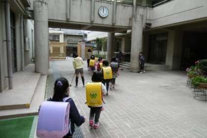 1年生は,しばらくの間,帰る方向が同じ友だちと並んで帰ります。