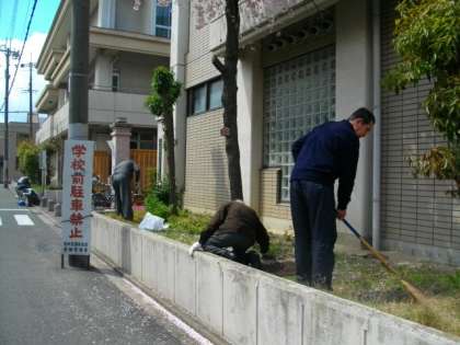 地域の皆様にお集まりいただき,校門前をきれいにしていただきました。ありがとうございました。