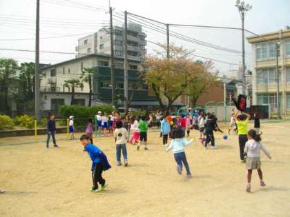 中間休みに外で元気よく遊んでいます。