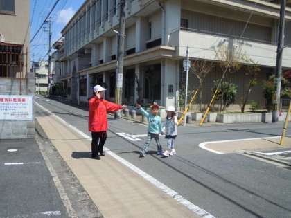 丸太町通りや学校近くの細い道,どちらも車やバイク,自転車がよく通ります。地域の方に見守られながら,安全に気を付けて歩きました。